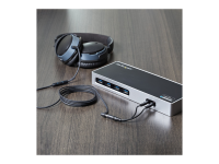 - Enables two headphone connections from one audio source
