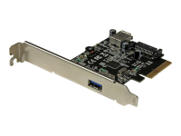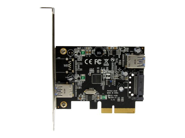 Upgrade your computer to the faster speed of USB 3.1 Gen 2, by adding one external and one internal 10Gbps USB Type-A ports. This USB 3.1 Gen 2 card prepares you for the next generation of USB performance, on the inside and outside of your computer. The 2-port card adds one internal Type-A connector as well as one external Type-A connector to your desktop computer, with a combined bandwidth of up to 10Gbps. For power-hungry devices, the card also has an internal SATA power connector, enabling you to use your computer's power supply to add more power to the ports. With greater bandwidth, you can save time and avoid the performance bottlenecks that are often associated with other connectivity technologies. With an internal port, you can connect internal devices that use a USB Type-A connector, such as a front-bay SD card reader. Plus, you can use the internal port to keep peripherals safely inside your computer case - perfect for high-capacity USB flash drives or interface devices used for external wireless peripherals such as keyboards and mice or Bluetooth adapters. The card also features an external port that can be used for any USB Type-A device, like your external hard drive or any wired peripheral. By adding 10Gbps USB ports to your computer, you can harness the speed of USB 3.1 Gen 2 and rest assured that you're ready for both current and future high-bandwidth USB-A devices. With higher data throughput, this PCI Express USB 3.1 card is a necessity for external hard drives, , and many other USB 3.1 peripherals. Plus, the USB card integrates a SATA power connector to support high-powered devices, making it ideal for use with large external storage solutions. For more flexibility, you can couple the card with a USB31AC1M USB-C to USB-A cable (USB31AC1M) and connect your USB Type-C devices. Connecting your older peripherals isn't a problem. This versatile USB 3.1 Gen 2 (10Gbps) card is backward compatible with legacy USB 3.0 and 2.0 devices that use the common USB Type-A port, so you can eliminate the added expense and aggravation of purchasing new devices. For a hassle-free installation with no additional software or drivers required, the card is natively supported by most operating systems, and interfaces with the PCI Express 3.0 x4 slot on your computer. Plus, the high-quality card includes both standard-profile and low-profile (half-height) brackets, making it easy to install in full or small form-factor PCs or servers.