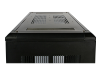 - Vented glass front door and mesh rear door for excellent passive cooling